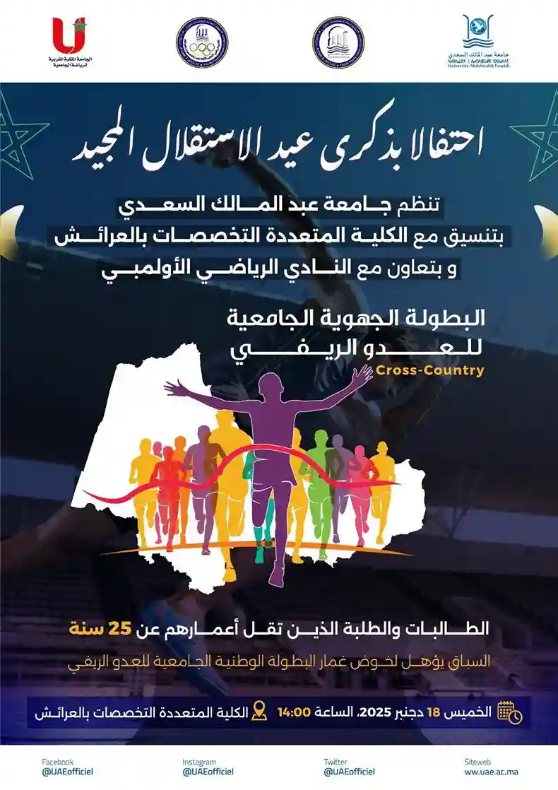 تنظم جامعة عبد المالك السعدي البطولة الجهوية الجامعية للعدو الريفي.